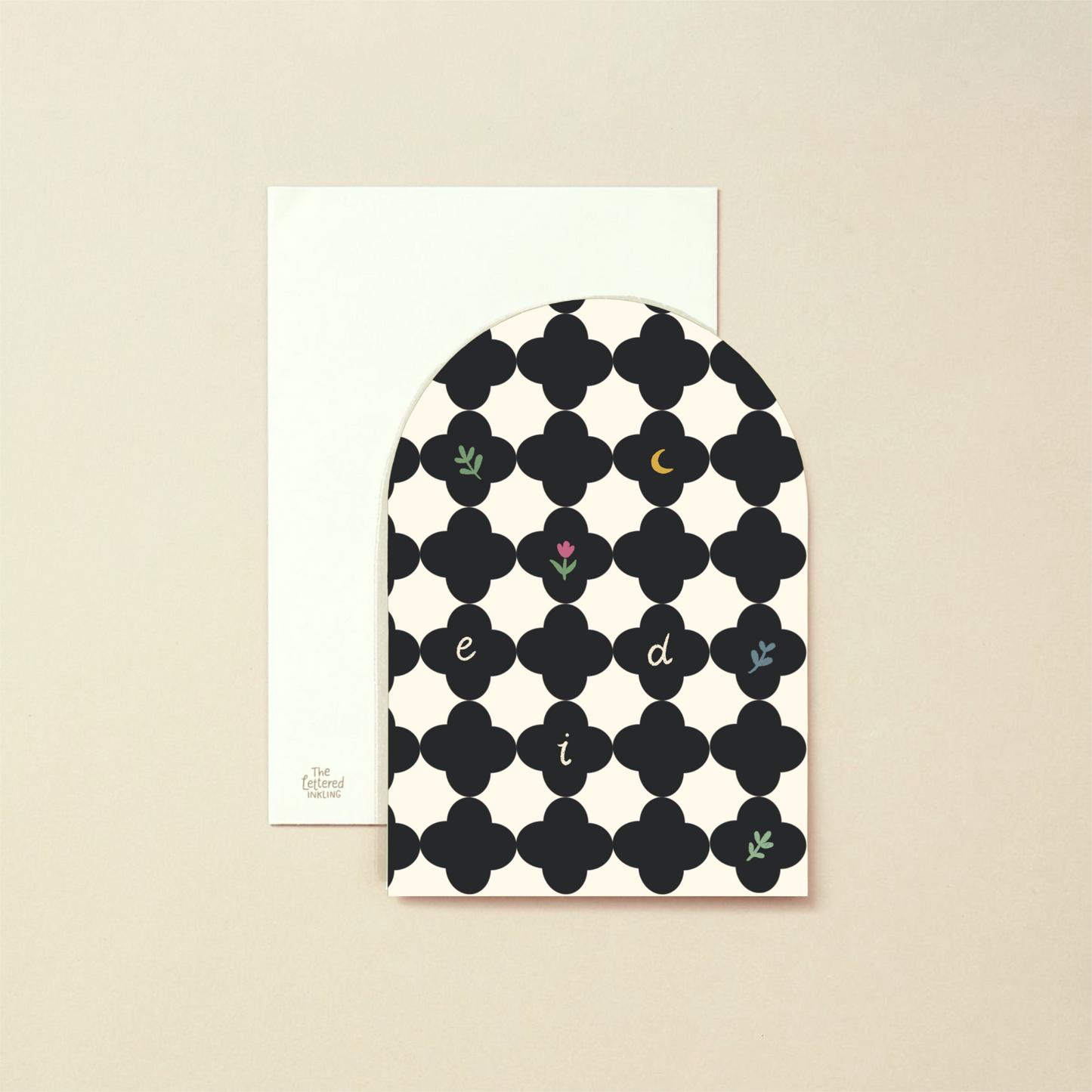 These Eid cards are A6 in size and are arch shaped. They are textured and blank inside and come with matching textured envelopes.