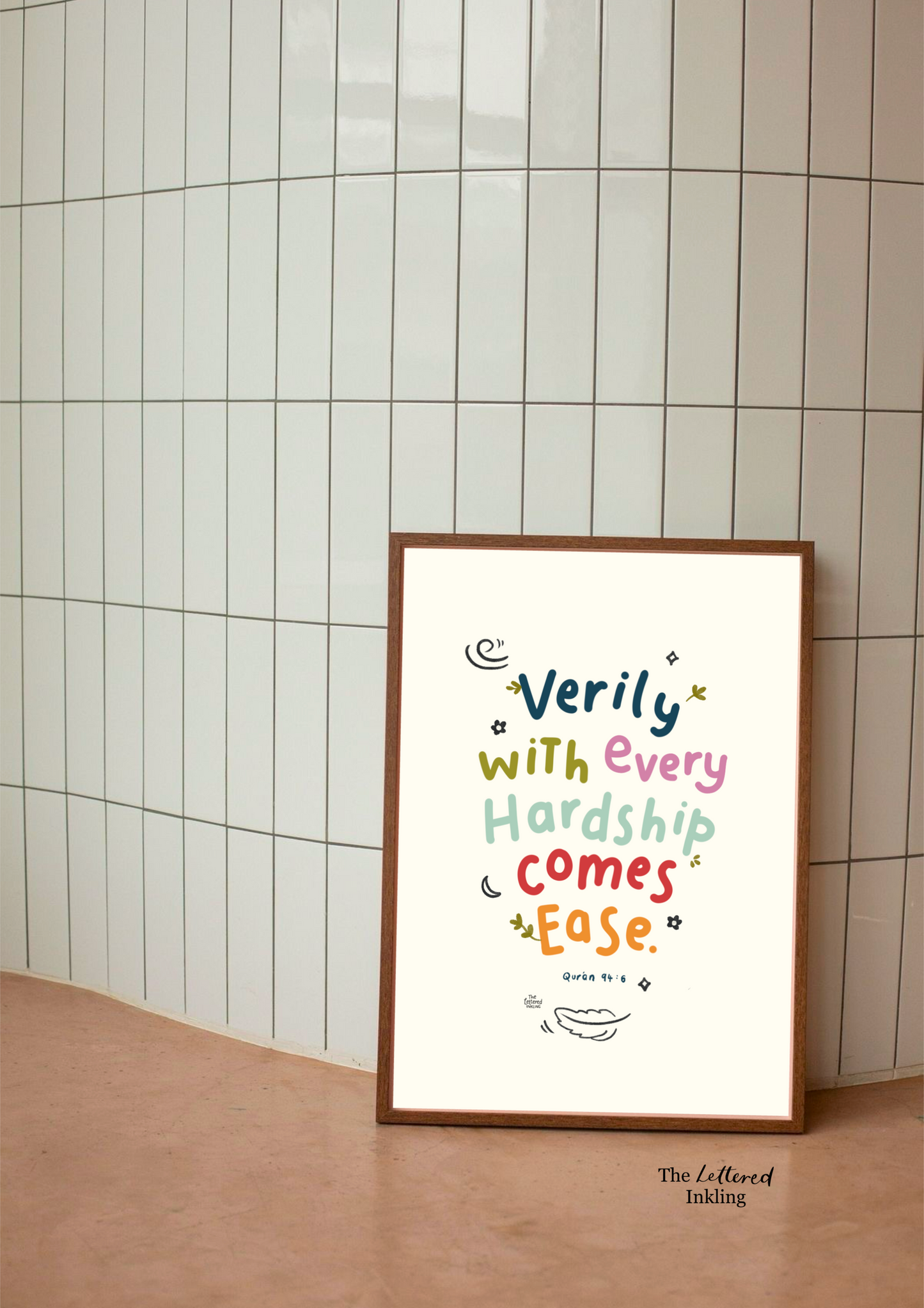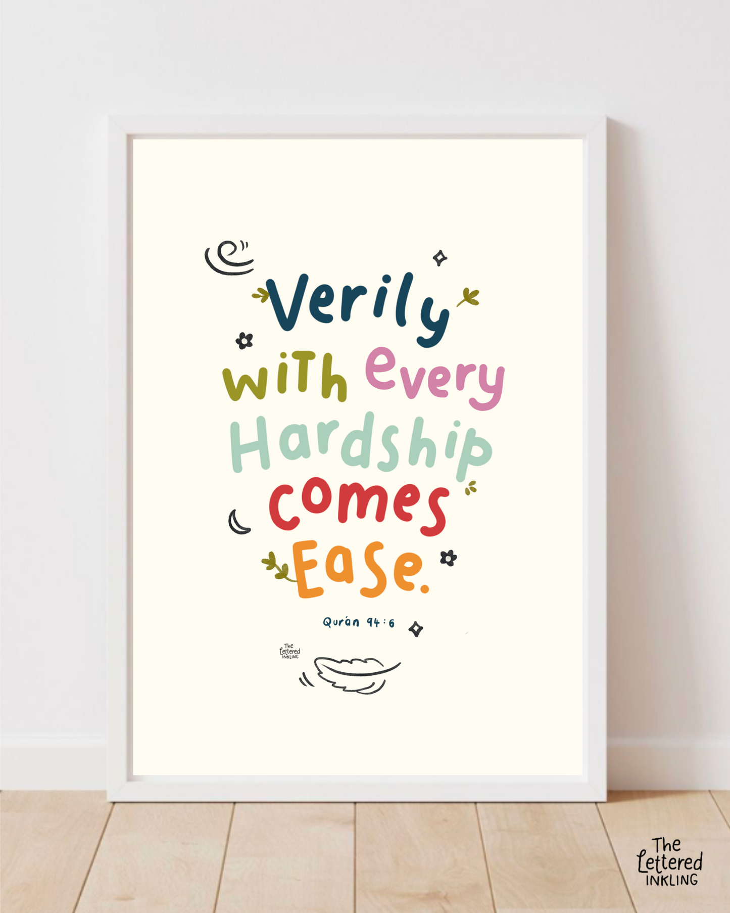 A wonderful Quran verse reminder from Surah Al-Inshirah. Ideal for kids and adults alike.